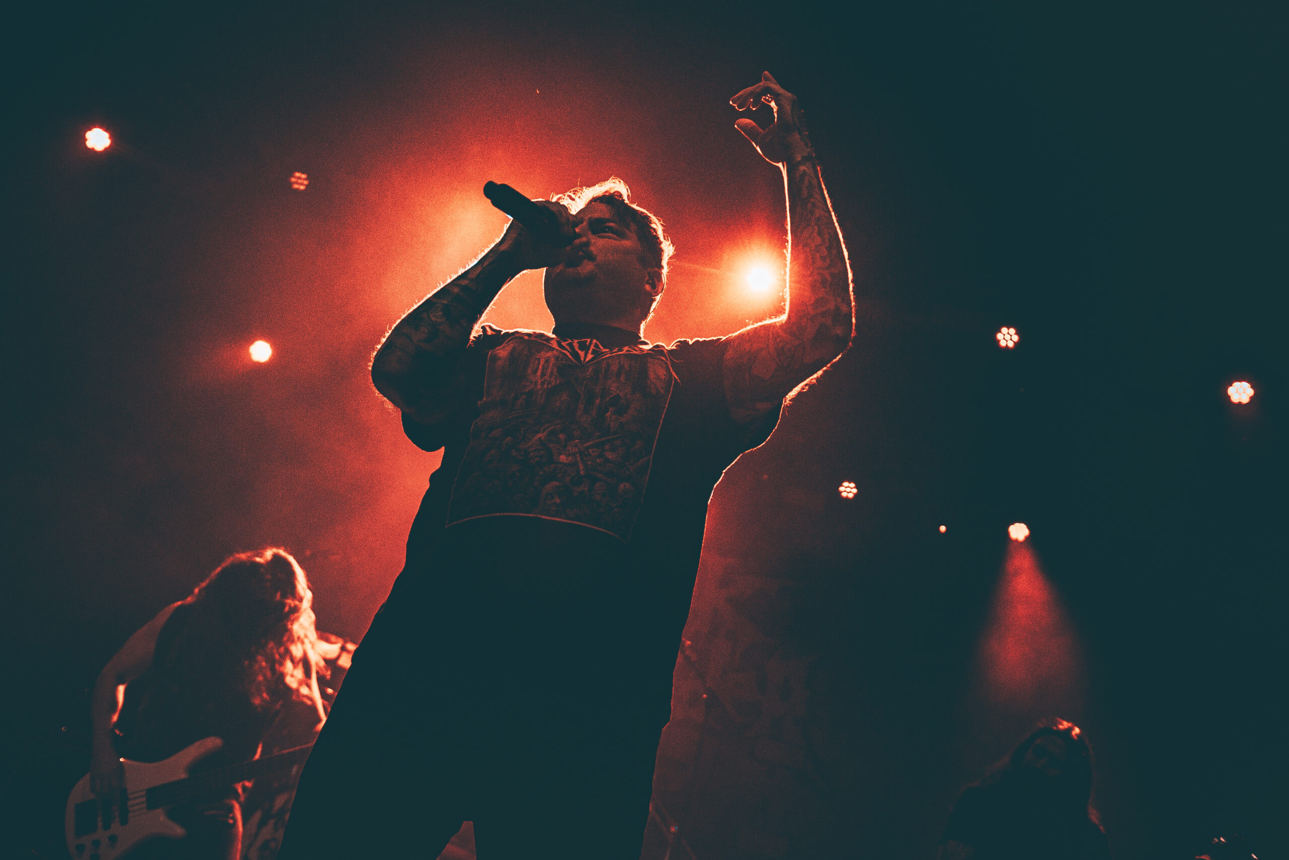Synchronised headbanging is elite, let’s be honest, and being backlit somehow makes it look even cooler. That’s exactly what Frozen Soul bring, undeniable coolness. As they bang their heads in perfect time, the crowd mirrors them, swinging long hair in unison and locking into the band’s rhythm. Lead singer Chad Green’s studded wristbands glint under the lights, adding to the intimidating, no-nonsense presence.